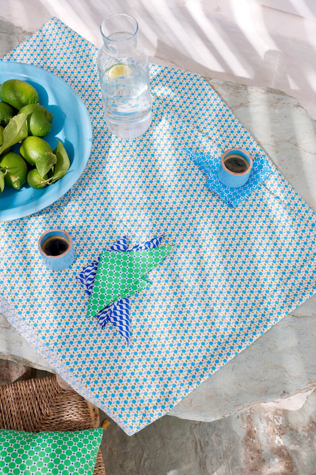 Motifs : Pépin bleu - Django azur - Kifkif bleu - Wasabi jaune - Mimoun bleu