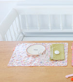 Set de table toile cirée TPU reversible en double imprimer, Saholy sable un coté et Django tangerine d'autre coté,